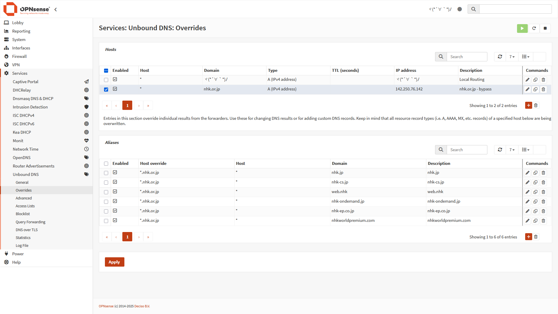 折角 OPNsense を建てたので、 DNS Override もしておく。